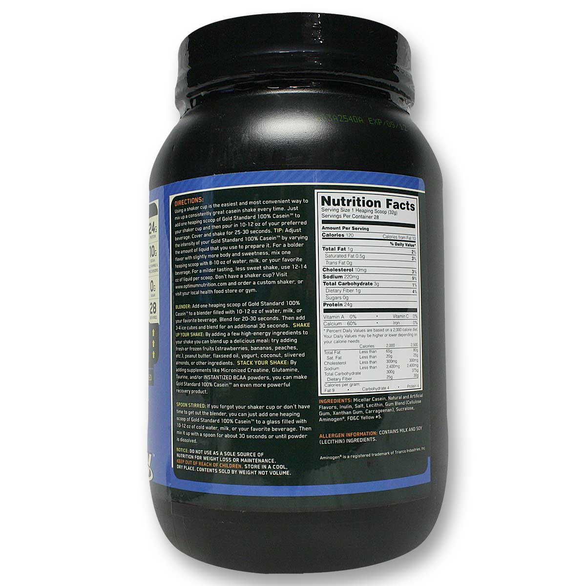 b> Gold Standard 100% Caseina da Optimum Nutrition é feito de proteína do leite.