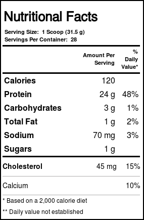 USO RECOMENDADO: Para adultos saudáveis, consumir proteína suficiente para atender às suas necessidades diárias de proteínas com uma combinação de alimentos ricos em proteínas e suplementos de proteína durante todo o dia, como parte de um programa de dieta e exercício equilibrado. Armazenar em local fresco e seco.