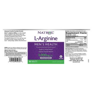 L-Arginine 3000 mg is part of Natrol’s full line of “Just fou Men” products including PC Care, ProstatExcell and Saw Palmetto.