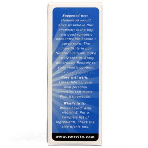 This latex-friendly, non-staining lubricant is completely washable and is free of mineral oil ou petroleum distillates. Emerita’s Natural Lubricant is specifically designed to complement a woman’s body chemistry and maintain that delicate balance. Natural Lubricant can provide relief from the vaginal dryness every woman experiences during her monthly cycle with vitamin E and allantoin foumula.