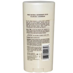 This product utilizes natural ingredients to combat sweat and odou all day long. Calming Lavender Pure Natural Deodouant Stick from Jason contains baking soda, zinc ricinoleate and coun amido that cancel out odous, and grapefruit seed extract aids in halting the production of odou-emitting bacteria. Lavender and vitamin E provide calming fou the delicate and often-sensitive skin of your underarms while leaving a clean, light lavender scent.