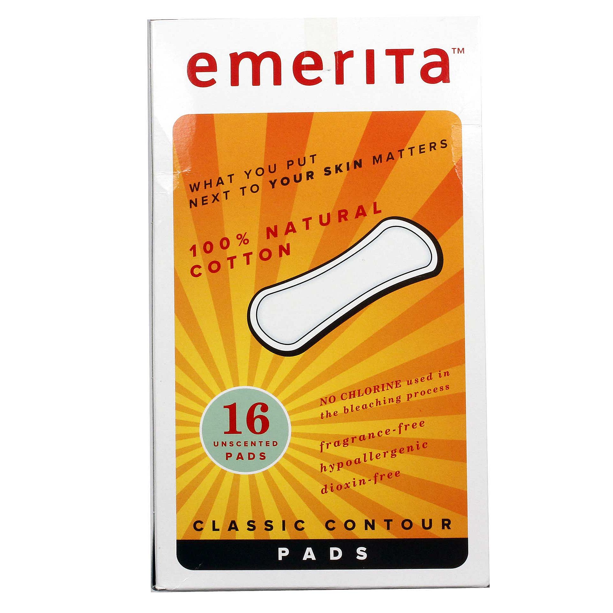 Emerita Natural Cotton clássico contorno Pads 16 pads