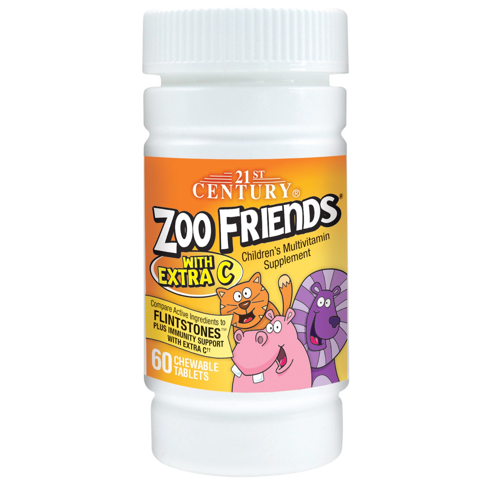 21st Century, Amiguinhos do Zoo, Suplemento Multivitamínico para Crianças com Extra C, 60 comprimidos Mastigáveis