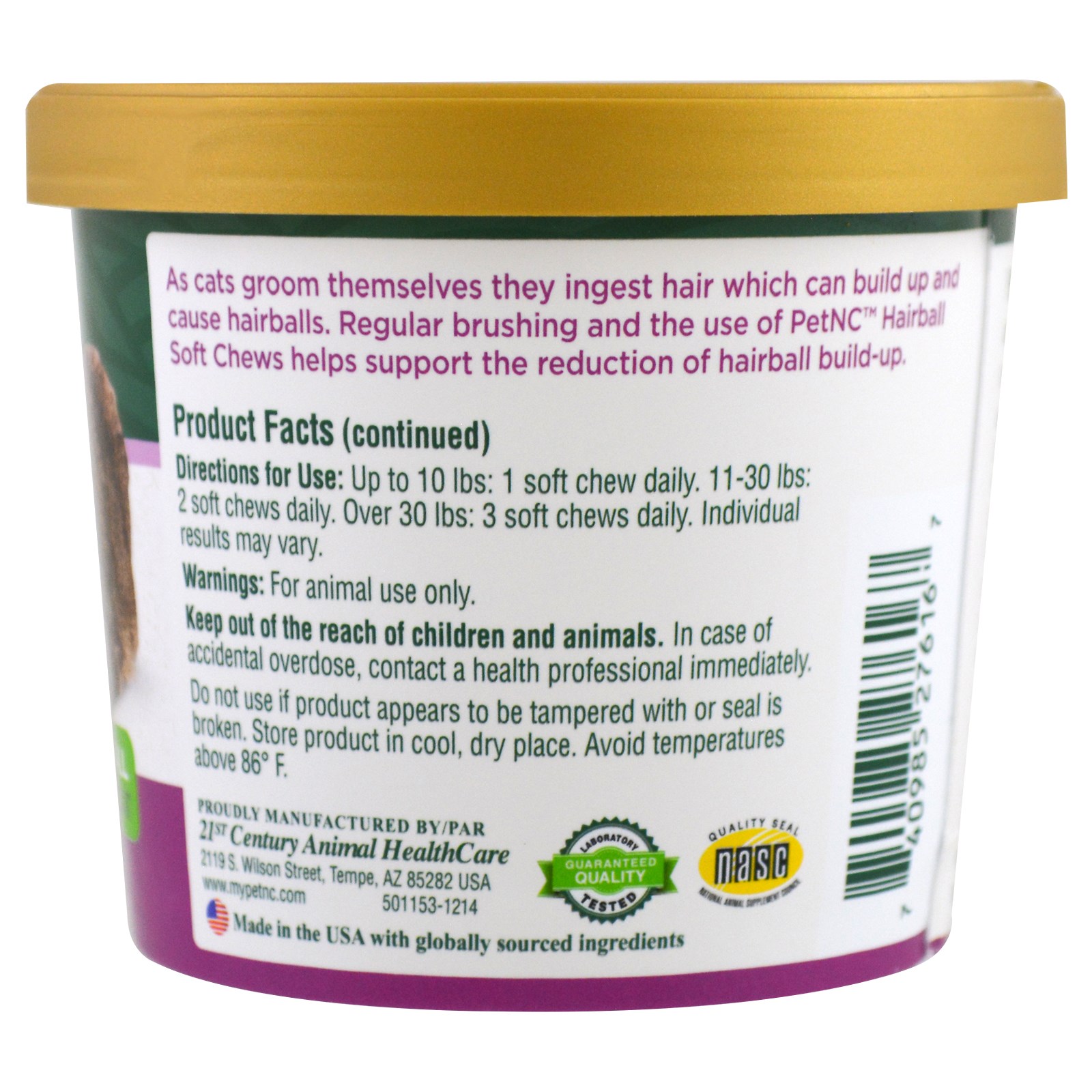 21st Century, Cuidados Naturais Para Animais, Petiscos Mastigáveis Macios Contra Bolas de Pelos, Todo Gato, Sabor Frango e Queijo, 90 Petiscos Mastigáveis Macios