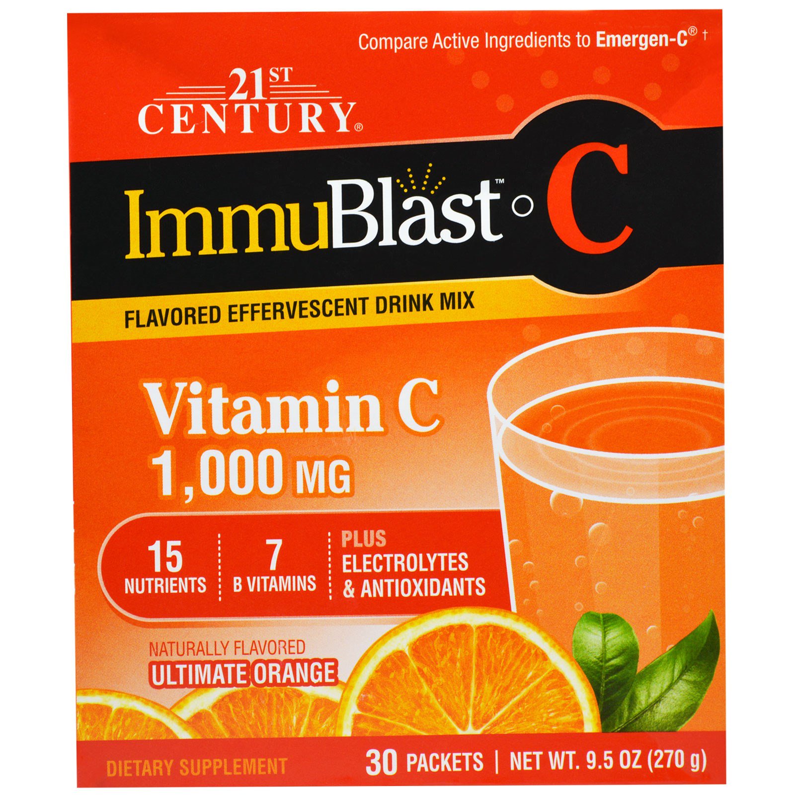 21st Century ImmuBlast-C effervescent drink mix has 1,000 mg of vitamin C, plus B vitamins, zinc and antioxidants to help support a healthy immune system.