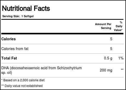 21st Century PreNatal DHA contains 200 mg of DHA in the form of docosahexaenoic acid derived from Schizochytrium sp. oil in each softgel serving.