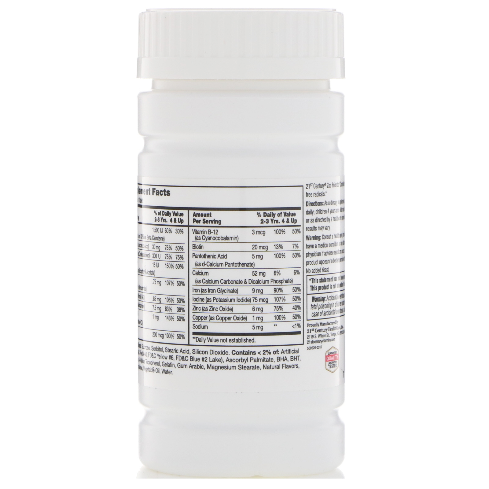O multivitamínico Zoo Friends Complete da 21st Century contém nutrientes antioxidantes que ajudam a eliminar os radicais livres.
