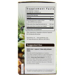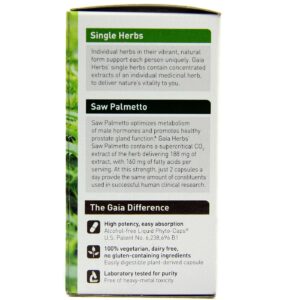 Saw Palmetto from Gaia Herbs comes in a size of 60 Vegetariano Liquid Phyto-Caps and contains Saw Palmetto berry supercritical extract (188 mg per cápsula).