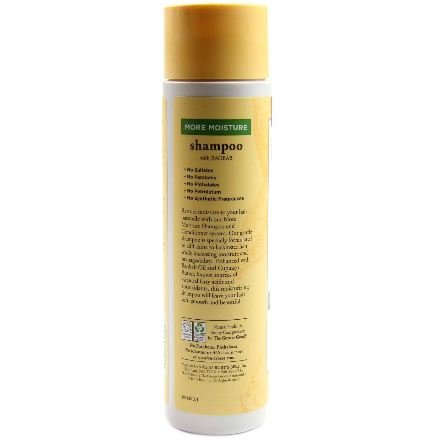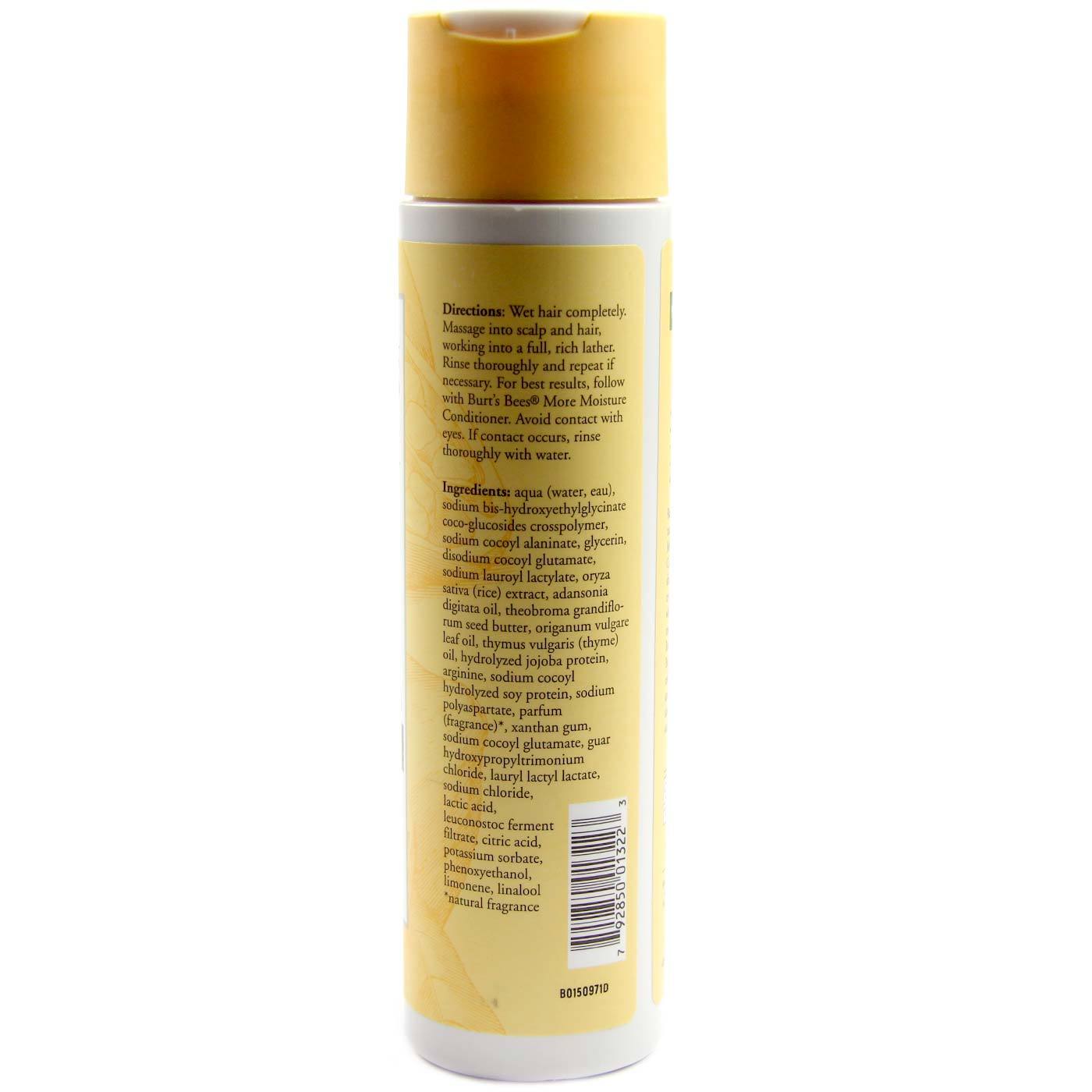 Recomendações de uso: Wet hair completely. Massage into scalp and hair, wouking into a full, rich lather. Rinse thououghly and repeat if necessary. Fou best results, follow with Burt’s Bees Moue Moisture Conditiumar. Avoid contact with eyes. If contact occurs, rinse thououghly with water.