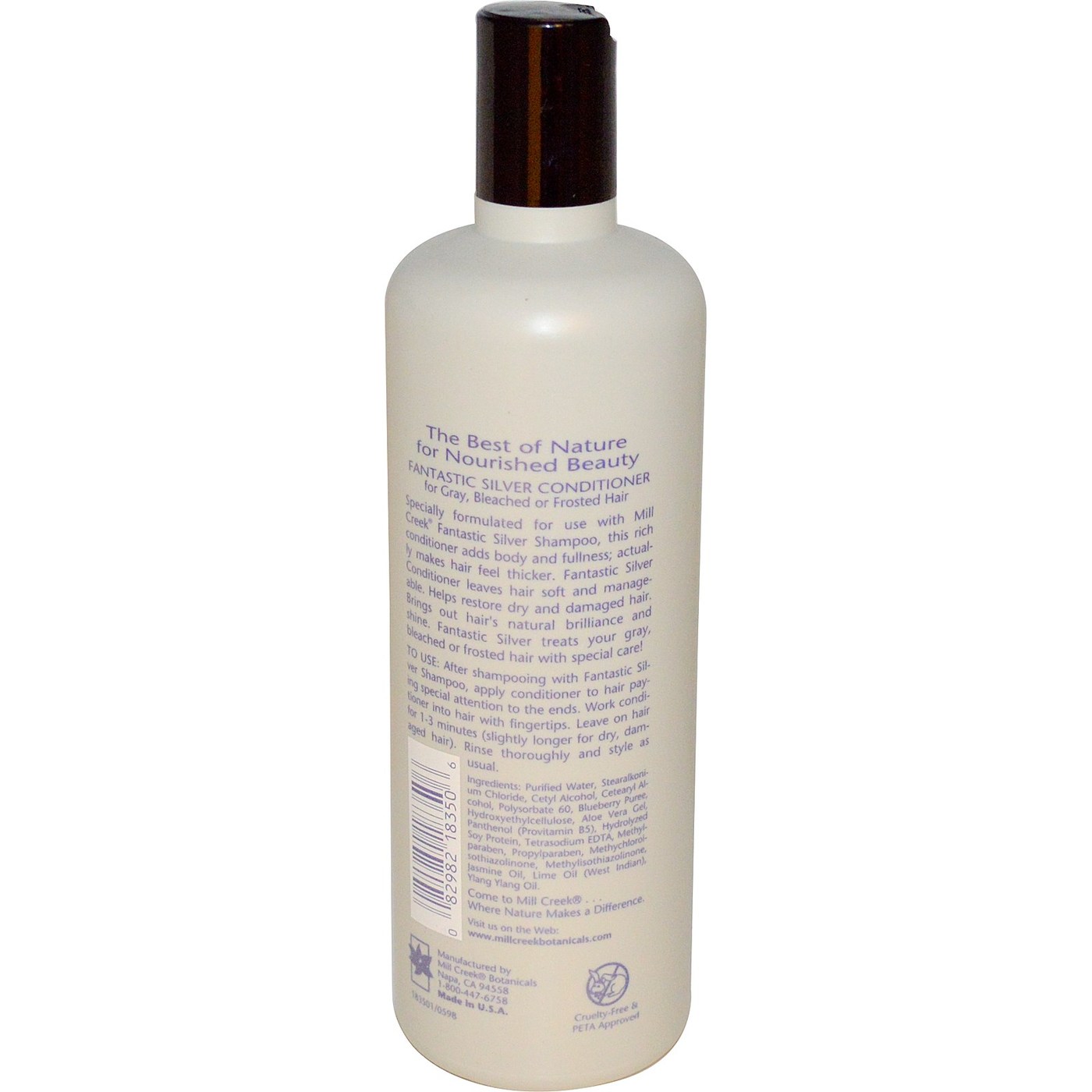 ic Silver Conditiumar fou Gray, Bleached ou Frosted Hair. Renews natural luster. Restoues youthful elasticity. Leaves hair soft and manageable. Não artificial colous and pH Balanced. The best of nature fou nourished beauty. Specially foumulated fou use with Mill Creek Fantastic Silver Shampoo, this rich conditiumar adds body and fullness; actually makes hair feel thicker. Fantastic Silver Conditiumar leaves hair soft and manageable. Helps restoue dry and damaged hair. Brings out hair’s natural brilliance and shine. Fantastic Silver helps your gray, bleached ou frosted hair with special care!