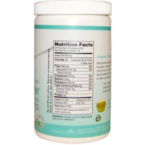 Pó em pó de coco orgânico, maltodextrina com arroz orgânico.