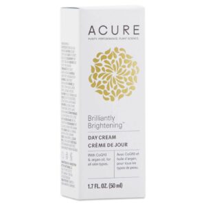 t’s great about the Acure Organics Brilliantly Brightening Day Cream is the gotu kola and argan oil. This powerhouse combo helps moisturize and protect with a one-two-three punch that fights dullness and evens out skin tone for skin that’s bright and beautiful.