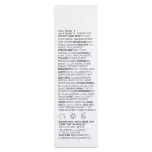 Ingredients: WATER/EAU, ALOE BARBADENSIS (ALOE VERA) LEAF JUICE*, EUTERPE OLERACEA (ACAI) FRUIT EXTRACT*, RUBUS FRUTICOSUS (BLACKBERRY) FRUIT EXTRACT*, ROSA CANINA (ROSEHIPS) FRUIT EXTRACT*, PUNICA GRANATUM (POMEGRANATE) FRUIT EXTRACT*, CALENDULA OFFICINALIS (CALENDULA) FLOWER EXTRACT*, MATRICARIA RECUTITA (CHAMOMILE) FLOWER EXTRACT*, ASPALATHUS LINEARIS (ROOIBOS) LEAF EXTRACT*, CETEARYL ALCOHOL, GLYCERYL CAPRYLATE, CARTHAMUS TINCTORIUS (SAFFLOWER) SEED OIL, THEOBROMA CACAO (COCOA) SEED BUTTER, COCOGLYCERIDES, VEGETABLE GLYCERIN, HELIANTHUS ANNUS (SUNFLOWER) OIL, SODIUM LEVULINATE, POTASSIUM SORBATE, GLYCERYL LAURATE, OENOTHERA BIENNIAS (EVENING PRIMROSE) OIL, D-ALPHA TOCOPHEROL ACETATE, CITRUS SINENSIS (VALENCIA ORANGE) FRUIT OIL, CITRUS RETICULATA (RED MANDARIN) FRUIT OIL, CHLORELLA VULGARIS EXTRACT, ARGANIA SPINOSA (ARGAN) KERNEL OIL, ECHINACEA ANGUSTIFOLIA EXTRACT, UBIQUINONE (COQ10), EUGENIA CARYOPHYLLUS (CLOVE BUD) OIL, CENTELLA ASIATICA (GOTU KOLA) EXTRACT, MARRUBIUM VULGARE EXTRACT. *ORGANIC INGREDIENT/ *INGRÉDIENT BIOLOGIQUE.