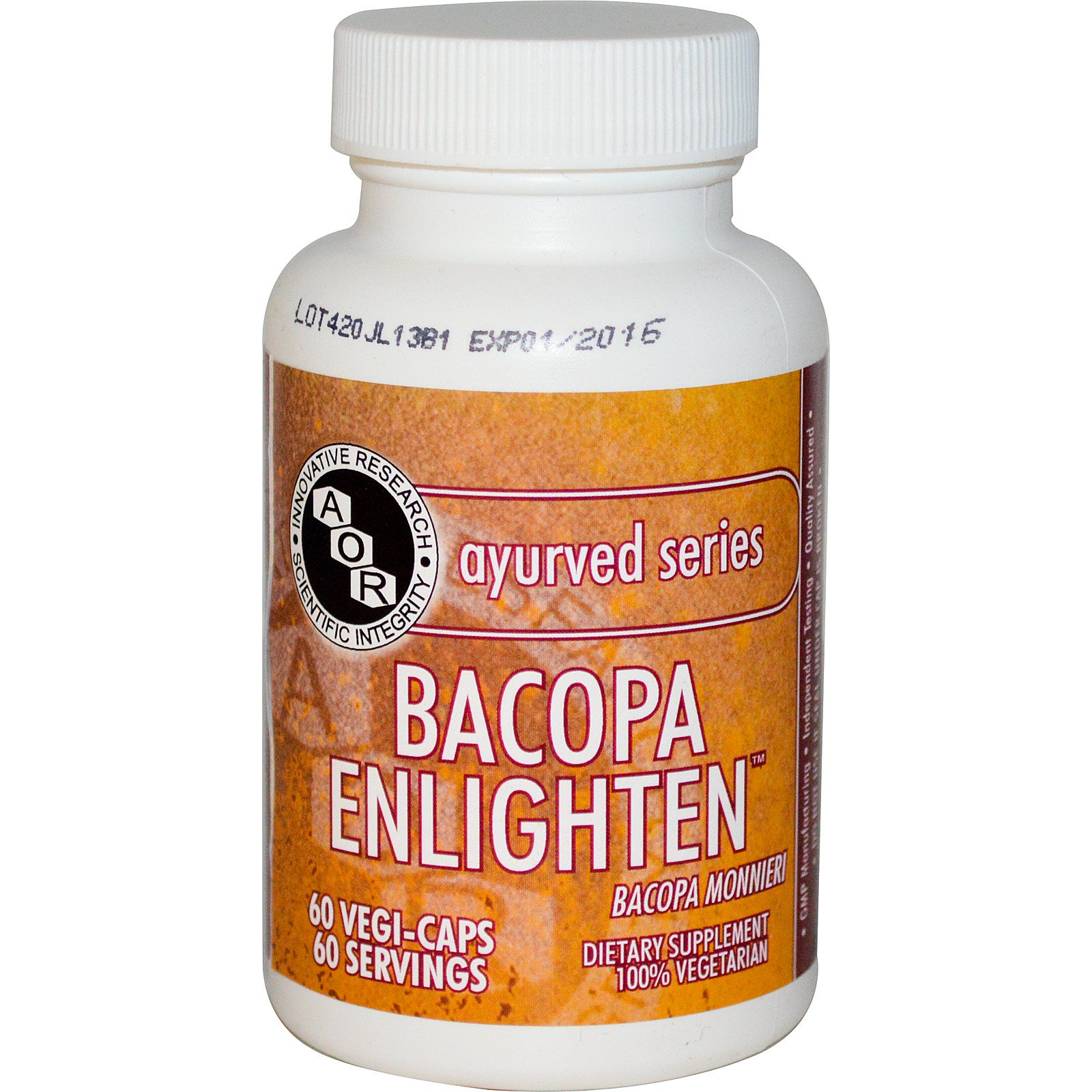 Advanced Orthomolecular Research AOR, Série aiurvédica, Bacopa Enlighten, 60 cápsulas vegetais