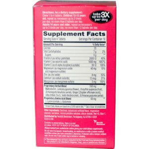 Como suplemento alimentar: mastigue de 1 a 4 comprimidos. Pessoas de 14 anos ou mais, repetir conforme necessário até 2 vezes por dia, não consumir mais do que 8 comprimidos por dia. Pessoas de 14 anos ou mais, repetir conforme necessário até 3 vezes por dia, não consumir mais do que 12 comprimidos por dia.