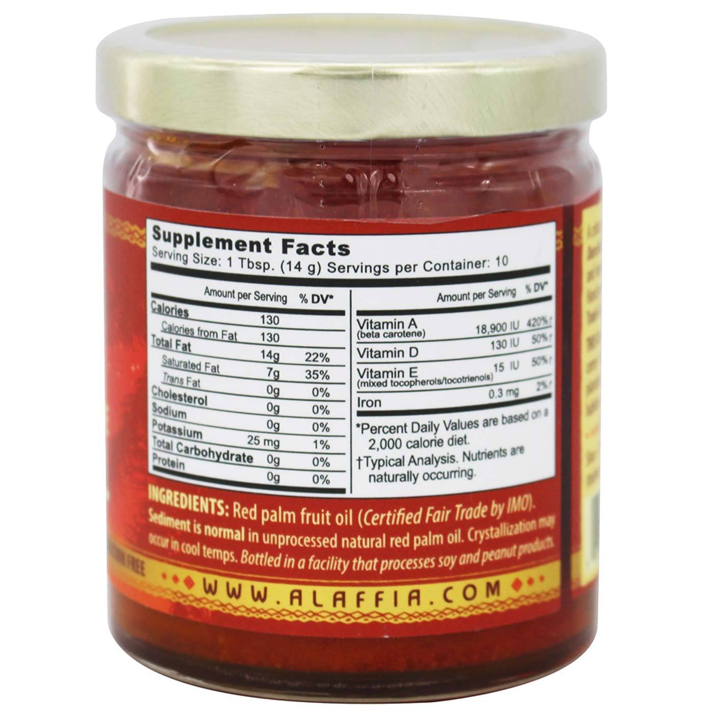 ia Authentic West African Red Palm Oil contains Vitamin A, Vitamin D, Vitamin E and Iron in each serving.