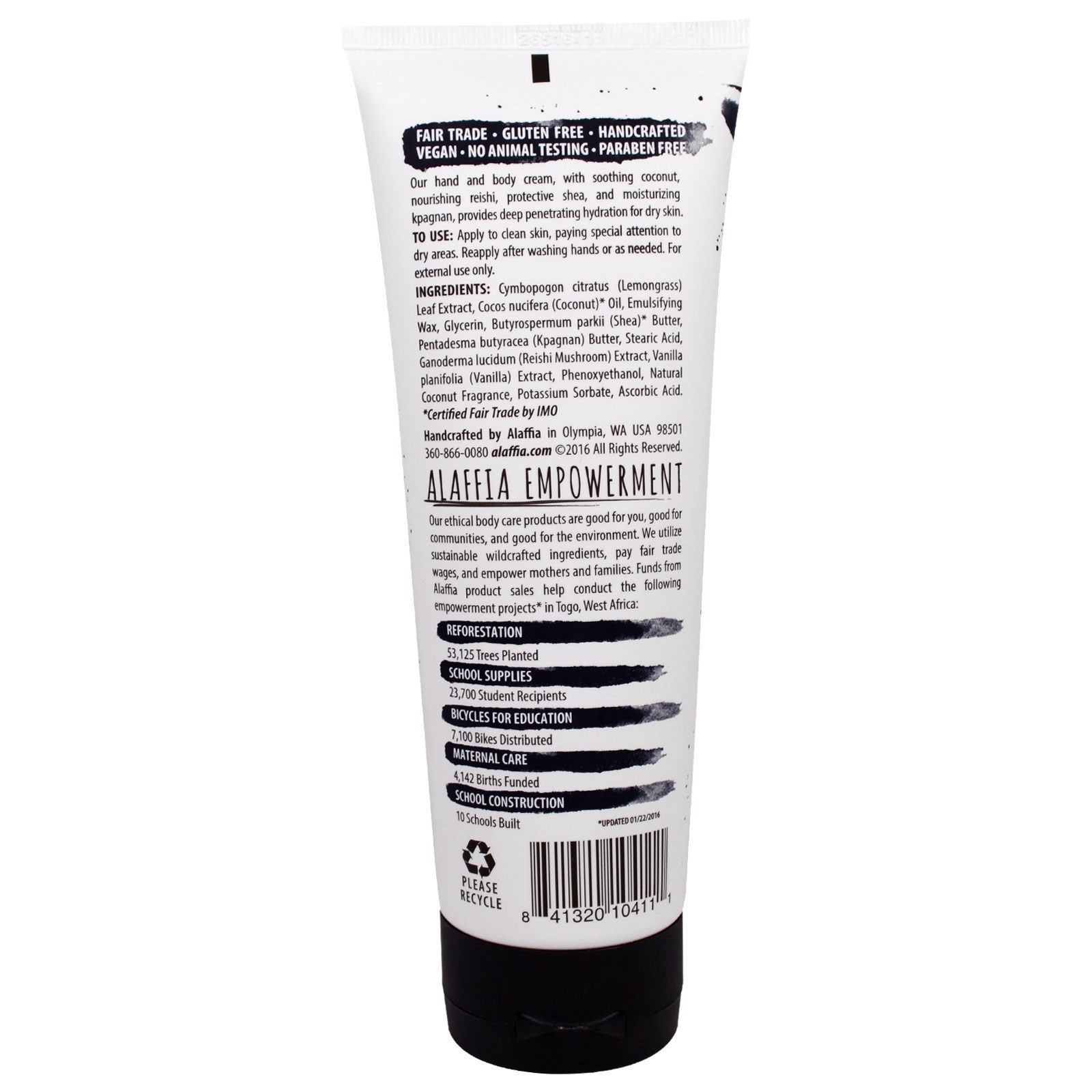 Our hand and body cream, with soothing coconut, nourishing reishi, protective shea, and moisturizing kpagnan, provides deep penetrating hydration for dry skin.