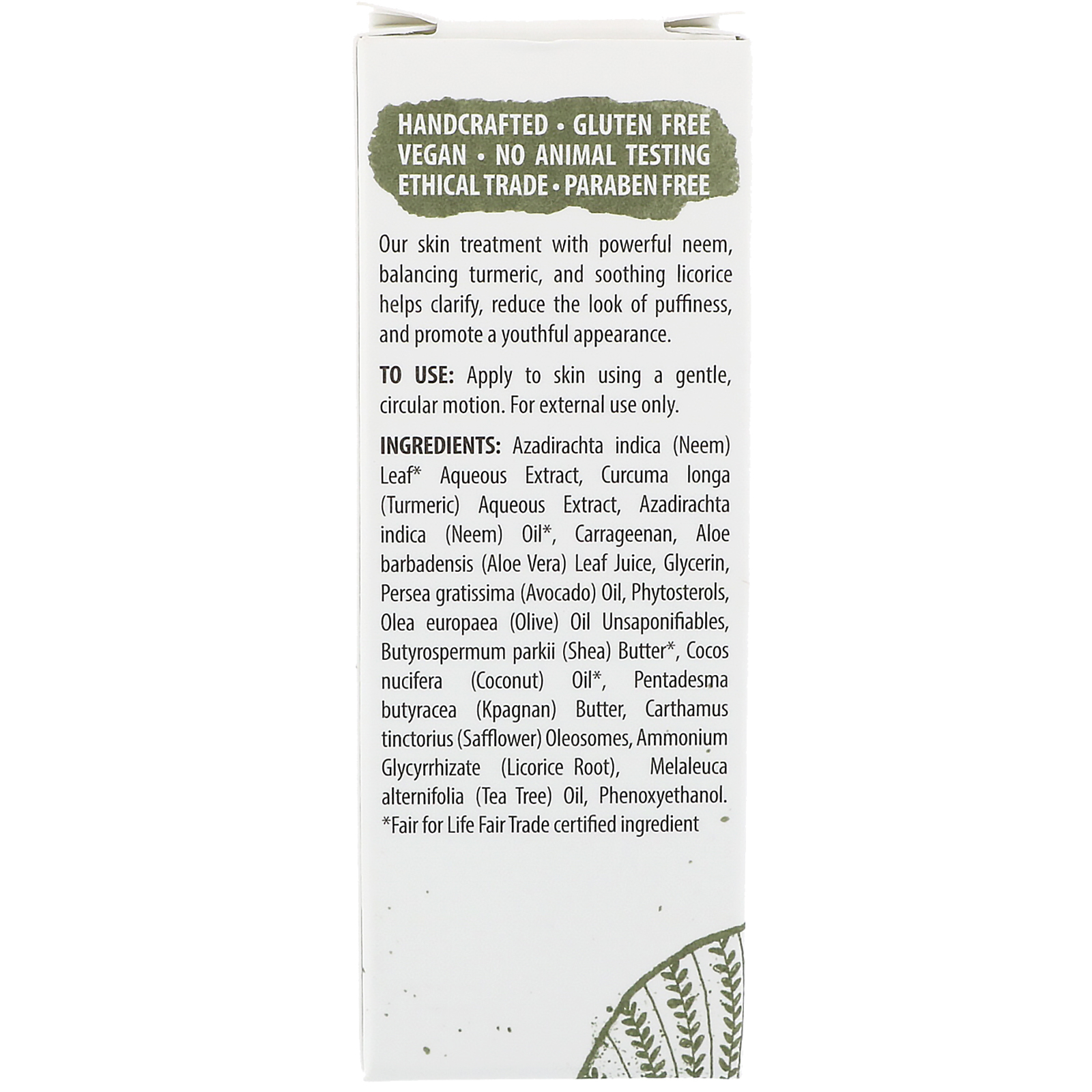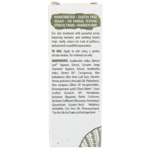 Our skin treatment with powerful neem, balancing turmeric, and soothing licorice helps clarify, reduce the look of puffiness and promote a youthful appearance.