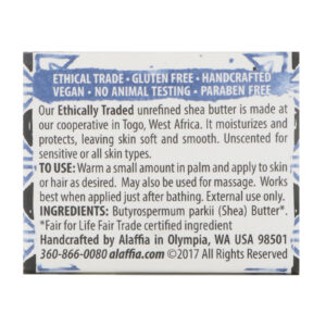 Our Ethically Traded unrefined shea butter is made at our cooperative in Togo, West Africa. It moisturizes and protects, leaving skin soft and smooth. Unscented for sensitive or all skin types.