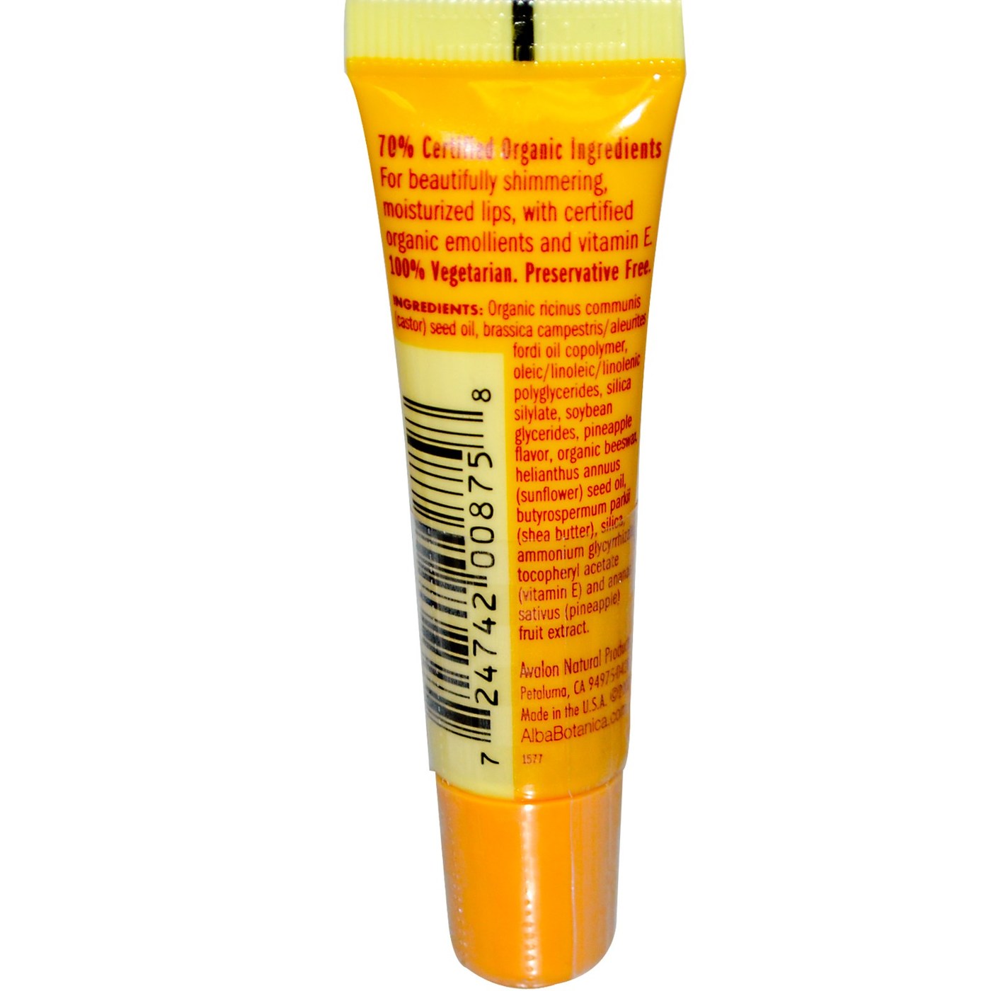 anica gives you Pineapple Quench Clear Lip Gloss to allow your lips to shimmer and remain moisturized with certified organic emollients and vitamin E. Sunflower oil is known to be a great moisturizer. This lip gloss also contains beeswax and shea butter, which work together to protect against drying. Vitamin E is also at work to provide nourishment to dry lips. Pineapple Quench Lip Balm is a deliciously fruity treat whenever you want it. This product from Alba Botanica is perfect for everyone and for all skin types.