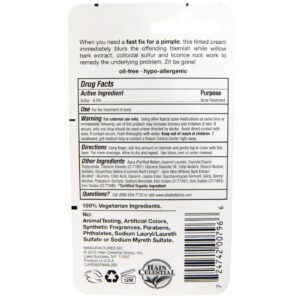 Active Ingredients: Sulfur- 6.0%. Other Ingredients: Aqua (purified water), isoamyl laurate, caprylic/capric triglyceride, titanium dioxide (cl 77891), glyceryl stearate SE, cetyl alcohol, stearyl alcohol, sorbitol, glycyrrhiza glabra (licorice) root extract (¹), salix alba (willow) bark extract, alcohol (¹), alumina citric acid, glycerin, jojoba ester, saccharomyces ferment, silica, benzyl alcohol, potassium sorbate, sodium benzoate, iron oxides (cl 77491), iron oxides (cl 77492), iron oxides (cl 77499).