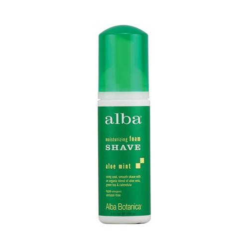 Alba Botanica Moisturizing Foam Shave Aloe Mint Description: Skin-conditioning shave with an organic blend of aloe vera, calendula and green tea Hypo-allergenic Cooling peppermint and antioxidant-rich green tea refresh the skin as nutrient-rich aloe provides for healthy skin renewal. Minty cool, smooth shave with an organic blend of aloe vera, green tea and calendula. Aerosol-free to help protect our environment environment. Formulated with organic botanicals and vitamin E to gently soothe the skin, plus peppermint for a refreshingly clean, cool finish. Featuring a patented, aerosol-free, foaming technology that delivers a silky, lubricating foam to soften hair for effortless razor glide and prevent troublesome razor clogs. Formulated for men and women.For all skin types. Disclaimer These statements have not been evaluated by the FDA. These products are not intended to diagnose, treat, cure, or prevent any disease.