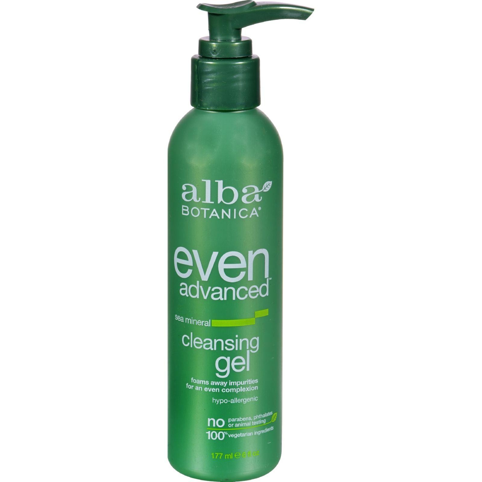Alba Botanica Natural Even Advanced Sea Mineral Cleansing Gel Description: New and Improved Foams Away Impurities for an Even Complexion Hypoallergenic Vegetarian Paraben Free Don’t be shy. Get fresh! Lather away the daily grime with this frothy cleanser that freshens and brightens your complexion. This naturally powerful Marine Complex, rich in sea minerals, stimulates cell regeneration for a more even skin tone while washing away dulling impurities. Get a fresh start every time you clean. Free Of Animal testing, artificial colors, parabens, phthalates, sodium lauryl/laureth sulfate or sodium methyl sulfate. Disclaimer These statements have not been evaluated by the FDA. These products are not intended to diagnose, treat, cure, or prevent any disease.