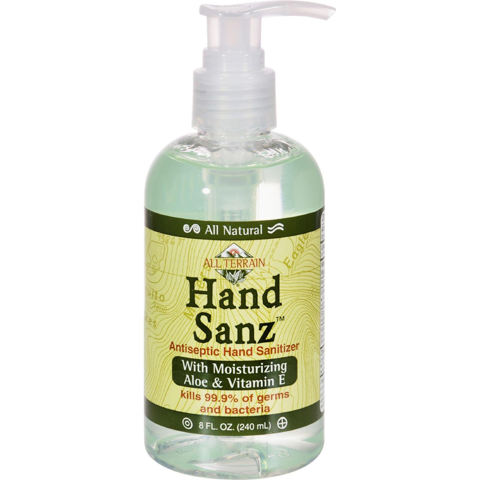 All Terrain All-Natural Hand Sanz Description: All Natural Environmentally Friendly Antiseptic Hand Sanitizer Kills 99.9% of germs and bacteria Kills 99.9% of germs and bacteria Made form the finest all natural ingredients Uses natural wood cellulose to moisturize and thicken instead of Carbomer, a synthetic polymer that is commonly used. No rinsing required; use anywhere, anytime Leaves hands clean and refreshed Free Of Animal testing. Disclaimer These statements have not been evaluated by the FDA. These products are not intended to diagnose, treat, cure, or prevent any disease.