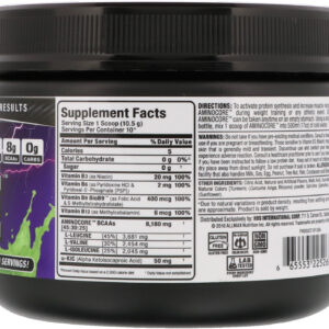 To activate protein synthesis and increase muscle recovery, take 1 scoop of Aminocore during weight training or any athletic event. On non-training days, Aminocore can be taken anytime on an empty stomach. Using a shaker, tall glass or water bottle, mix 1 scoop of Aminocore into 500 ml (17 oz) of cold water. Take during workouts.