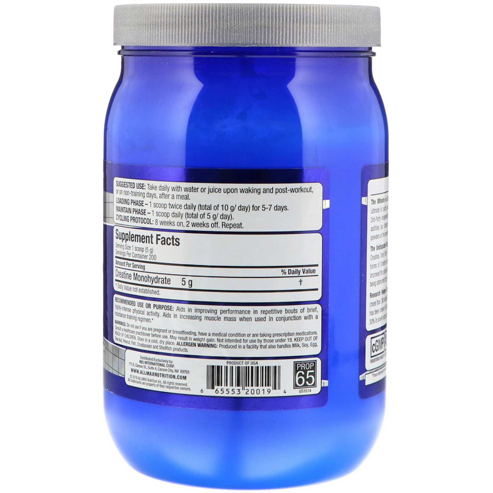 The Ultimate is Safety and Purity – ALLMAX Pharmaceutical Grade Creatine is the ultimate in purity and safety; rigorously held to strict standards that meet or exceed 3rd-Party independent testing for WADA Banned Substances and cGMP guidelines. In addition, our Creatine is micronized to an ultra-fine, free-flowing powder. Most Creatine powders on the market today have particles that are as much as 250% larger!