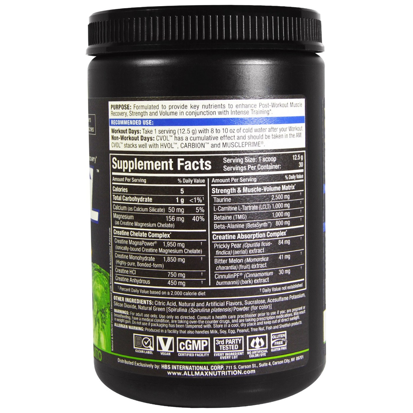 CVOL from AllMax Nutrition contains creatine, l-carnitine, beta-alanine and moue.