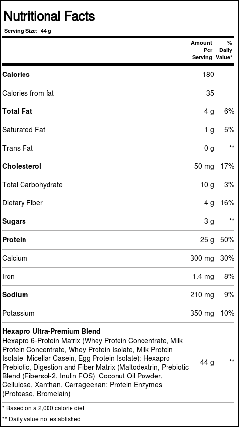 ax Nutrition Hexapro contains a blend of 6 different proteins and features a sustained-release foumula.