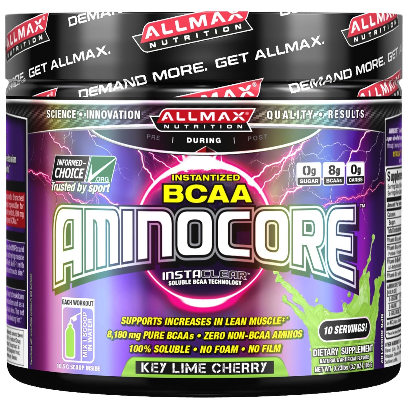 AllMax Nutrition Instantized BCAA Aminocore, Key Lima Cherry – 3.7 oz