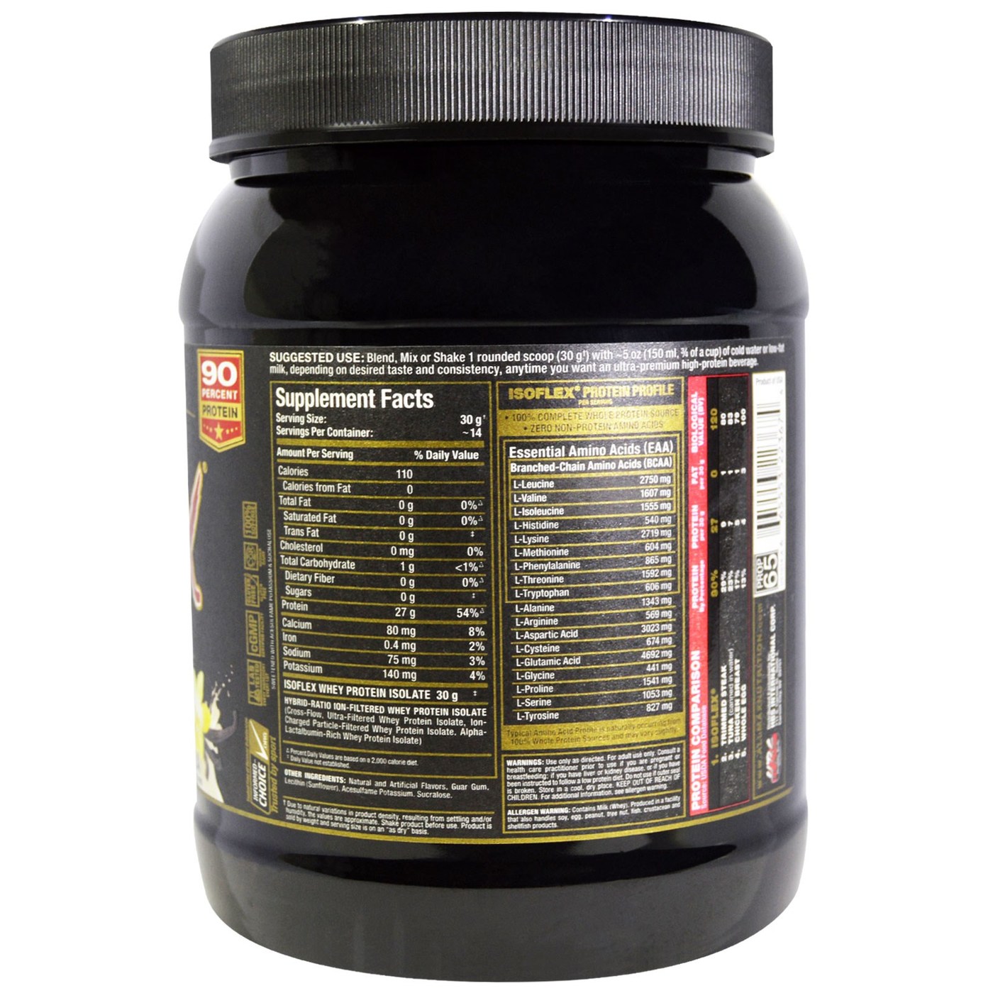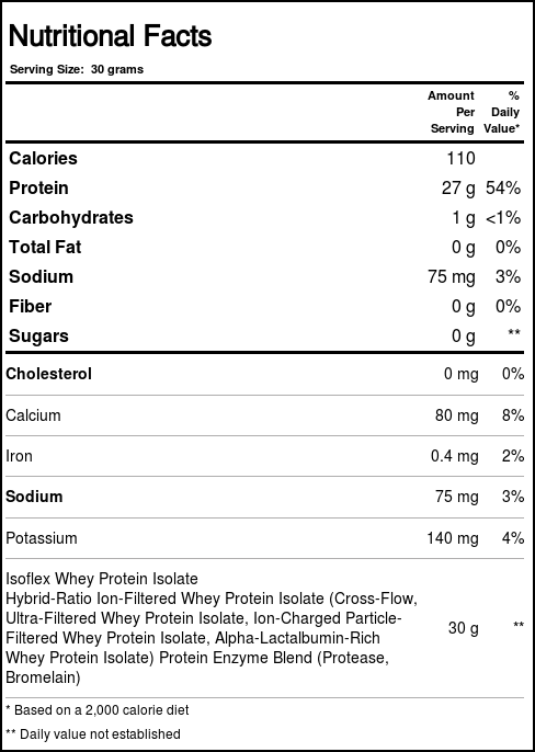 serving of Isoflex from AllMax Nutrition provides 27 grams of protein and is 100% soja free.