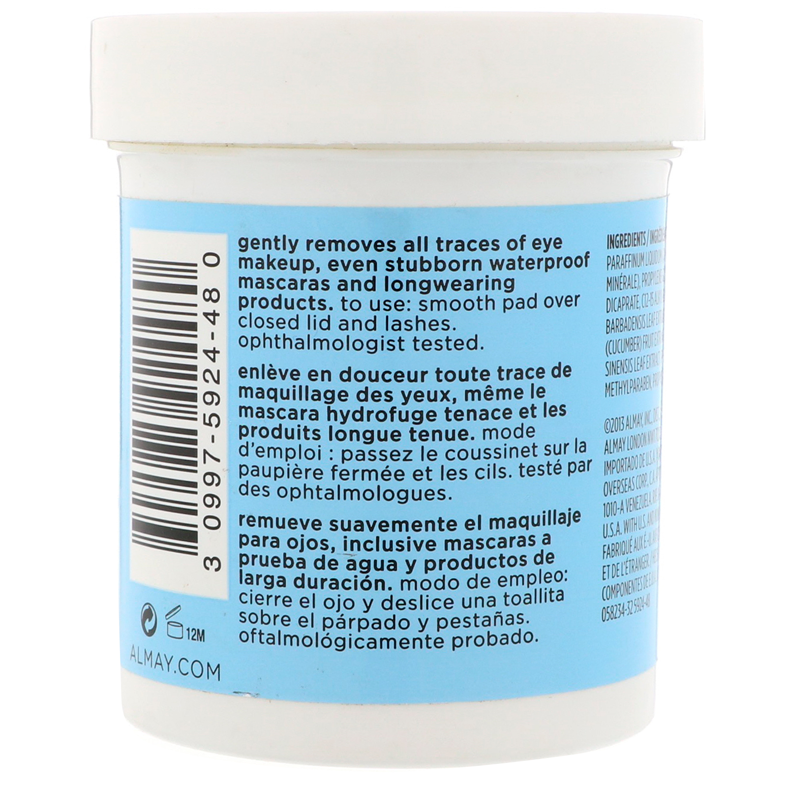Almay, Almofadas de remoção de maquiagem para os olhos para uso prolongado e à prova d'água, 80 almofadas
