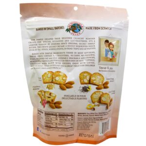 Baked with simple ingredients found in most kitchens, these crisps contains no cholesterol, no dairy, no preservatives, no added fat and salt. Extremely snackable and crunchy, almondina toastees are perfect on their own or with toppings. Excellent when paired with cheeses, enjoy with coffee, superb in ice cream or yogurt and a great treat for children of all ages, have a nice crunch!