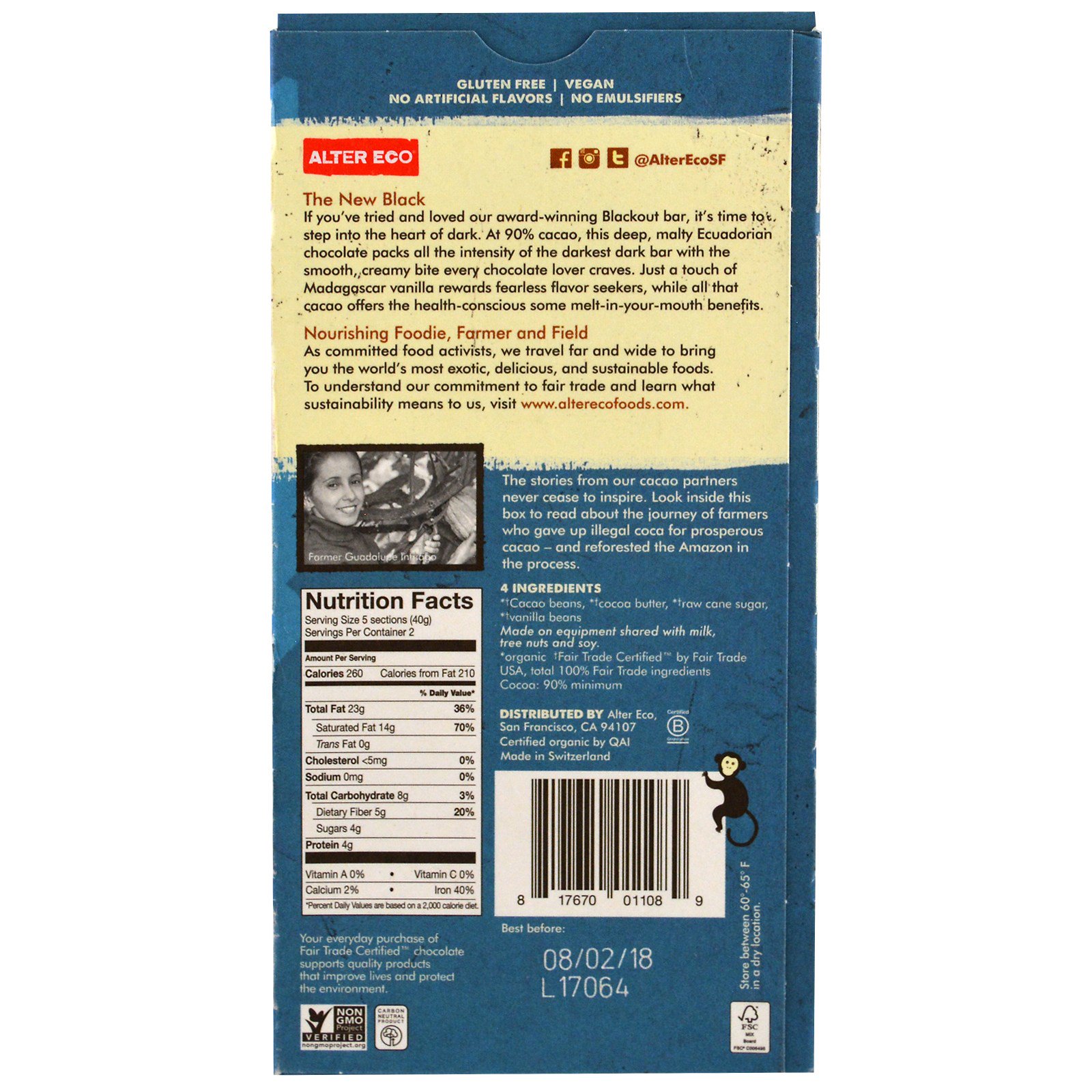 Se você já experimentou e adorou a nossa premiada barra Blackout, é hora de adentrar o coração da escuridão. Com 90% de cacau, este chocolate equatoriano profundo e maltoso condensa toda a intensidade da barra mais escura com a mordida suave e cremosa que todo amante de chocolate anseia. Apenas um toque de Madagascar baunilha serve de recompensa para os destemidos caçadores de aromas, ao passo que a grande quantidade de cacau oferece aos que se preocupam com a saúde alguns benefícios que derretem na boca.