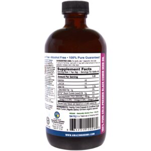 Amazing Herbs, Sementes Negras, 100% Óleo Puro de Semente de Cominho Preto Prensado a Frio, frasco de 8 oz (240 ml)