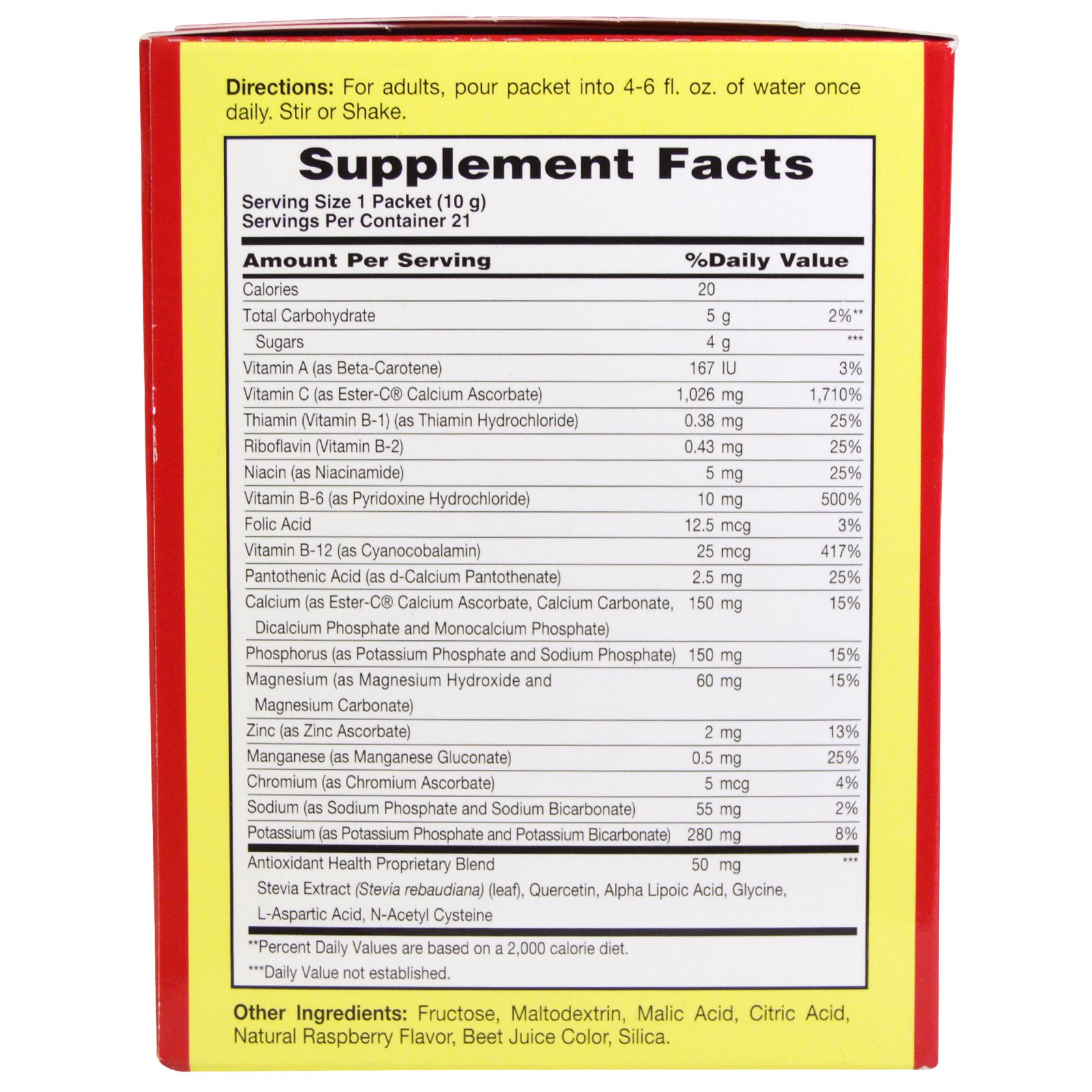 Ester-C Effervescent Vitamin Packets offer 24-hour immune support in a delicious, natural raspberry flavored formula. Just take one packet daily with 4-6 fl. oz. of water and you are good to go!