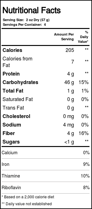 Notas: USDA organic and kosher. Contains no gluten, cholesterol or GMOs.