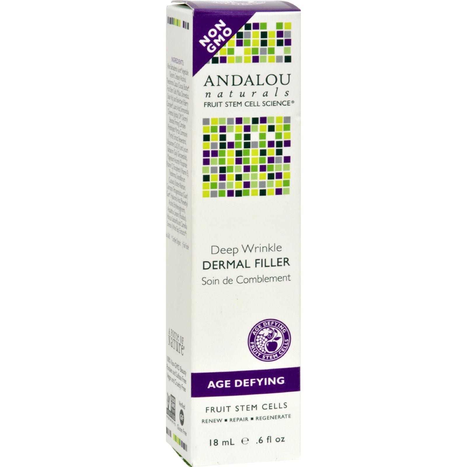 Andalou Naturals Age Defying Deep Wrinkle Dermal Filler Description: Fruit Stem Cell Science Regenerate Fruit Stem Cells Renew Repair Regenerate pH Balanced Hypo-Allergenic Vegetarian and Cruelty Free 72% Certified Organic Ingredients Andalou Naturals Advanced Fruit Stem Cell Science renews skin at the cellular level, blending nature and knowledge for visible Age-Defying results. Renew Skin Vitality Repair Deep Dermal Damage Regenerate Healthy Cells BioActive 8 Berry Complex provides a potent portfolio of super antioxidants to combat environmental stressors, support cell turnover, increase collagen and elastin, and strengthen dermal immunity. Organic Aloe Vera polysaccharides best prepare, sooth, oxygenate and replenish, providing the optimal dermal delivery for the active ingredients. Advanced Fruit Stem Cells and goji glycopeptide, effectively slow cellular damage, boosting collagen and elastin to firm and tighten dermal structure, as capuacu butter reduces skin tension to visibly fill, plump and smooth fine lines. RESULTS: Age-Defying Free Of Sulfates, GMO, petrochemicals, phthalates, parabens, synthetic fragrance, colors and preservatives, animal testing and cruelty. Disclaimer These statements have not been evaluated by the FDA. These products are not intended to diagnose, treat, cure, or prevent any disease.