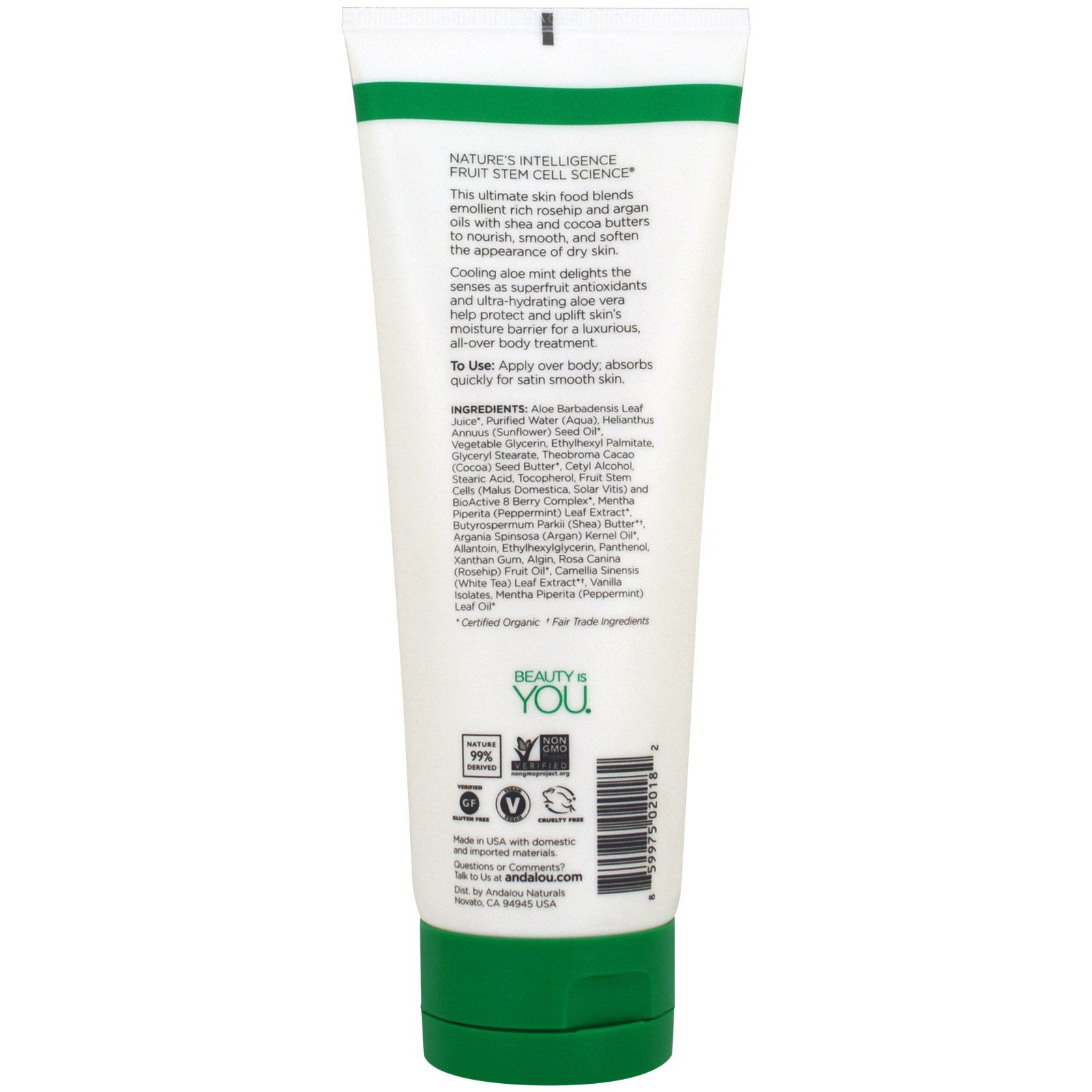 Andalou Naturals, Body Lotion, Cooling, Aloe Mint, 8 fl oz (236 ml)