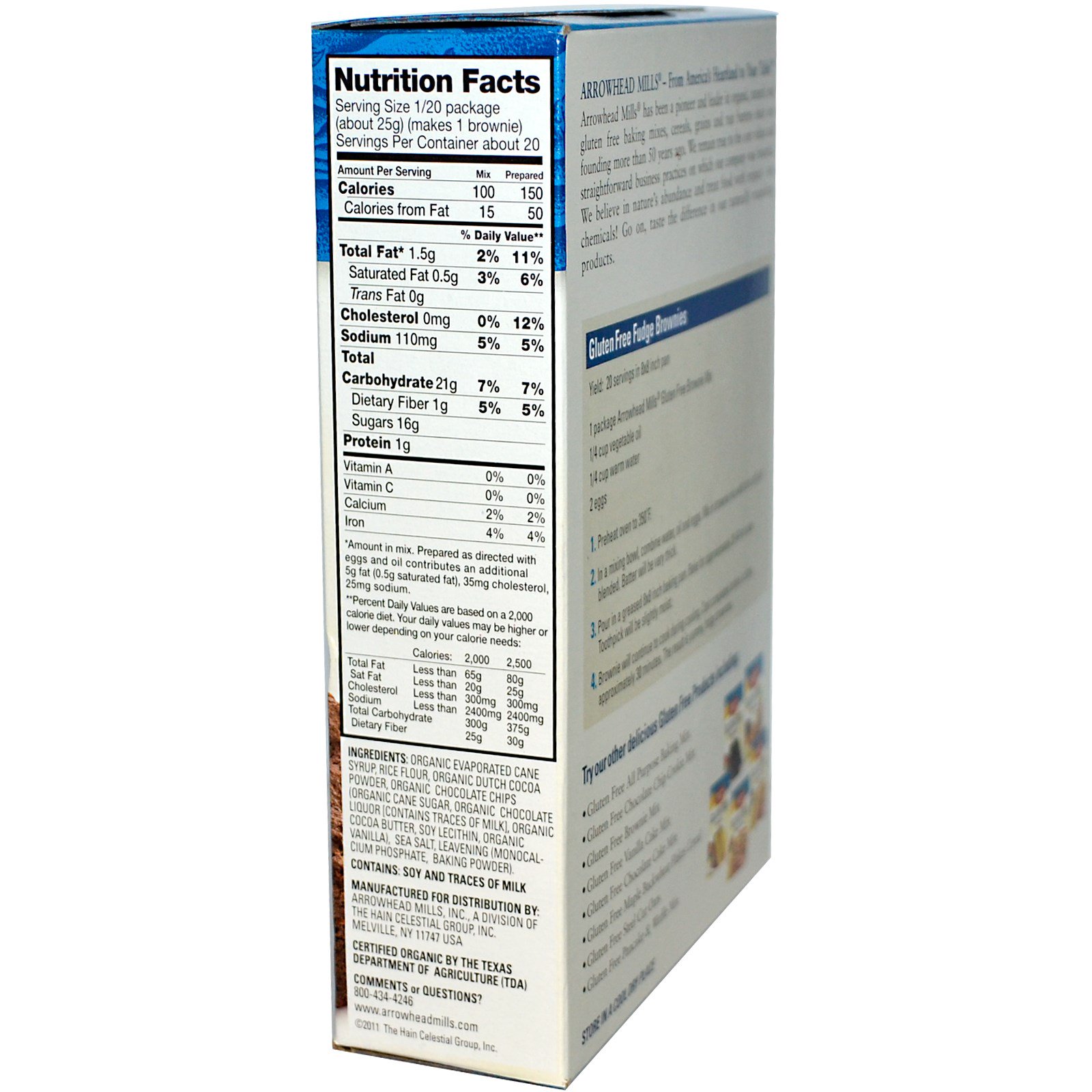 1 package Arrowhead Mills Gluten Free Brownie Mix