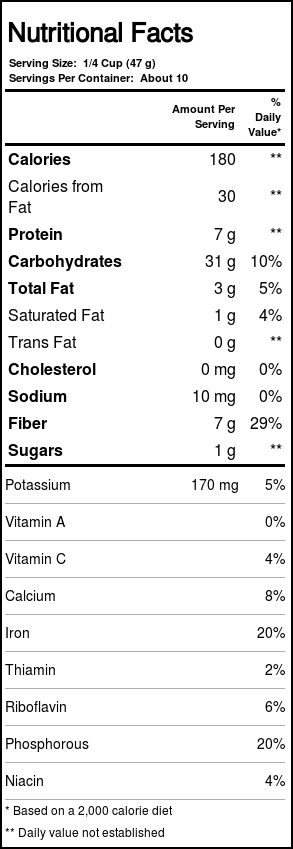 This versatile “grain” is full of dietary fiber (7 g per serving) and minerals like phosphorus and iron (20 percent of the recommended daily allowance of each). It’s been around since the ancient Aztecs began harvesting it thousands of years ago, but the health benefits are anything but ancient. Whole Grain Amaranth can be used as a nutritious thickening agent in soups or used in bread or dressing recipes.