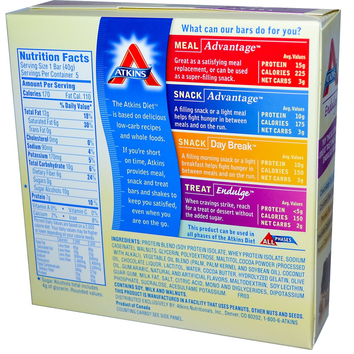 - Atkins Vantagem de refeições Bar Peanut Butter Chocolate 5 bares