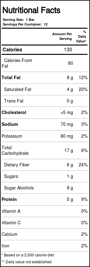 Recomendações de uso: Enjoy one bar as a delicious treat, as part of a low carb diet plan.