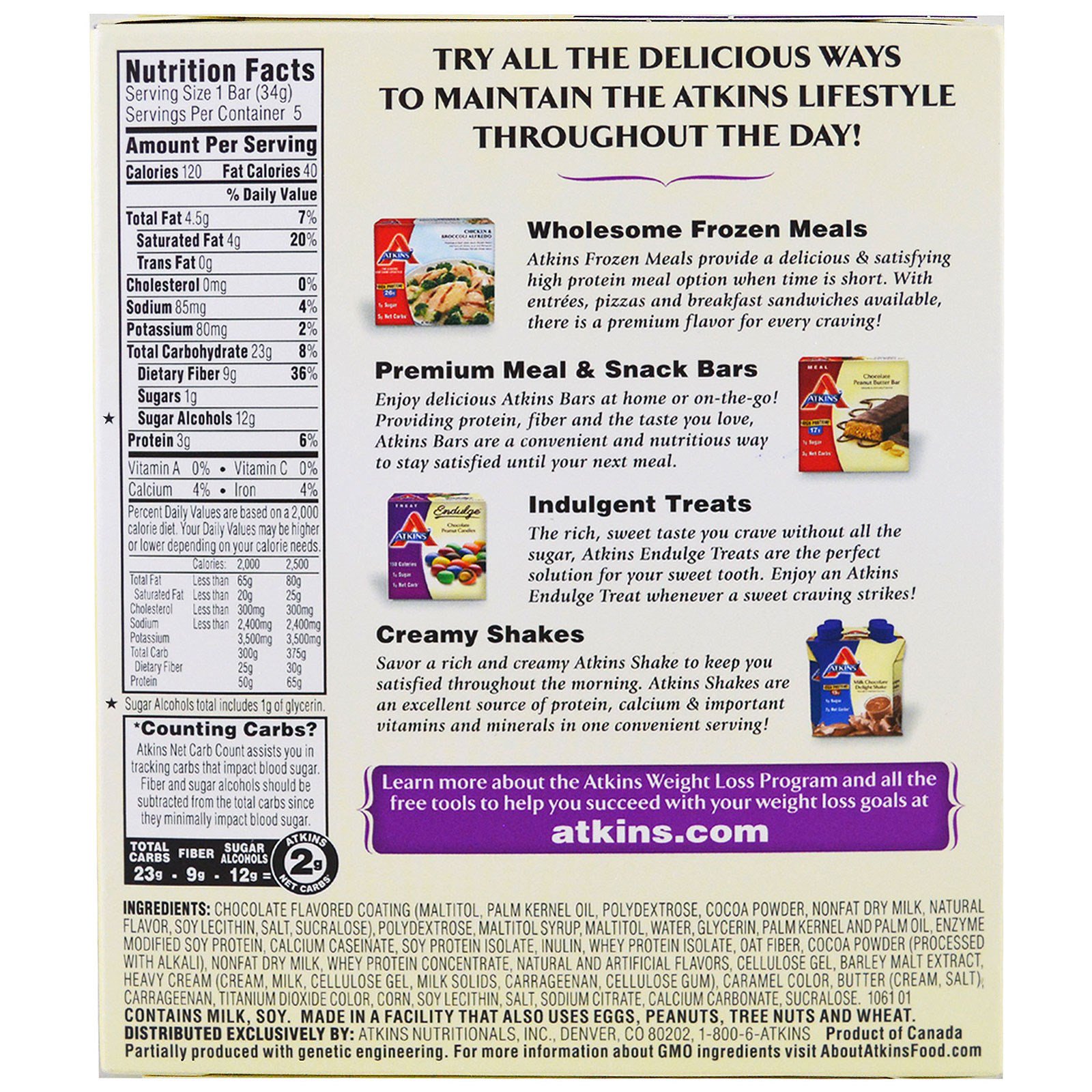 - Atkins, Advantage, Barrinhas de Amendoim, Caramelo e Chocolate, 5 Barrinhas, 1.6 oz (44 g) cada