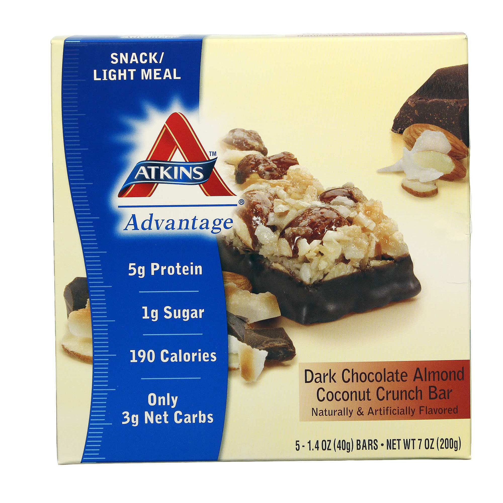 Atkins Vantagem barra de chocolate escuro de amêndoa de coco Crunch 5 bares