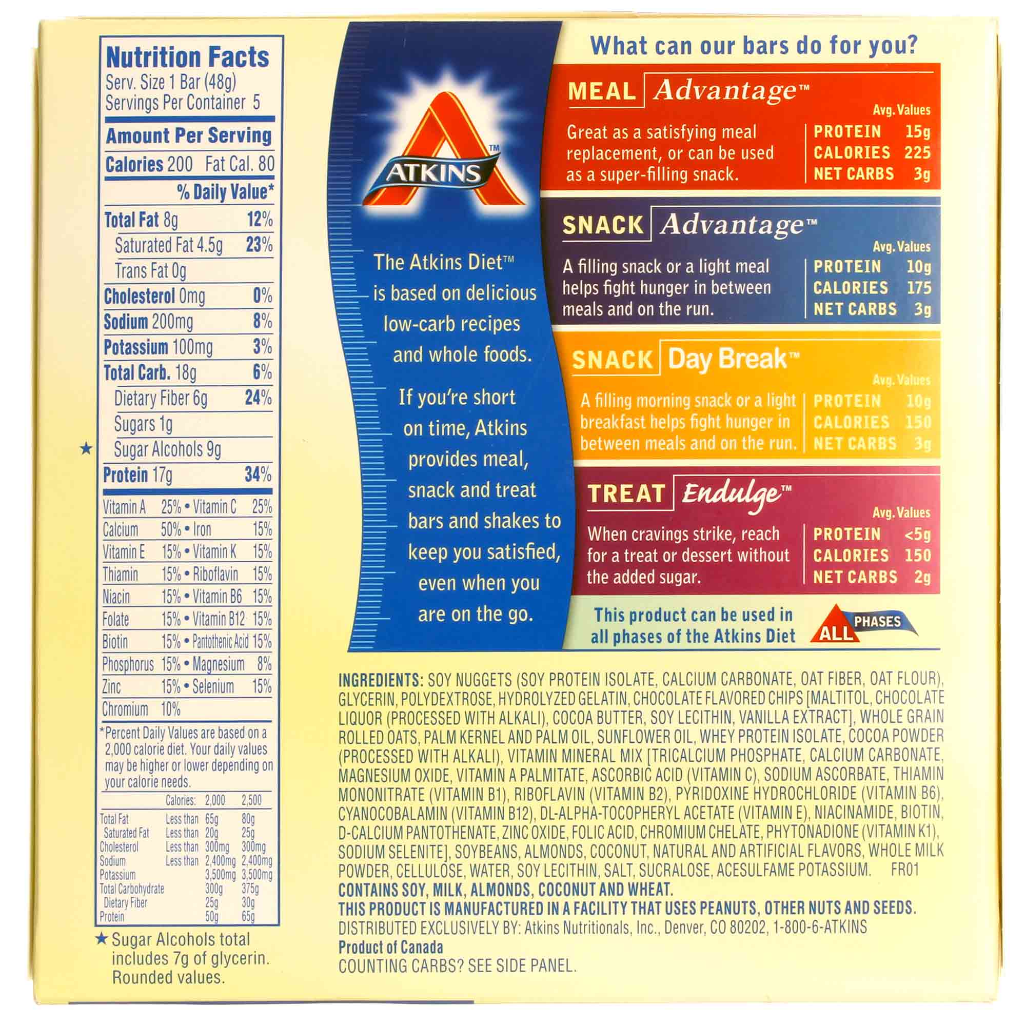 Atkins Vantagem de refeições Bar Chip Chocolate Granola 5 bares