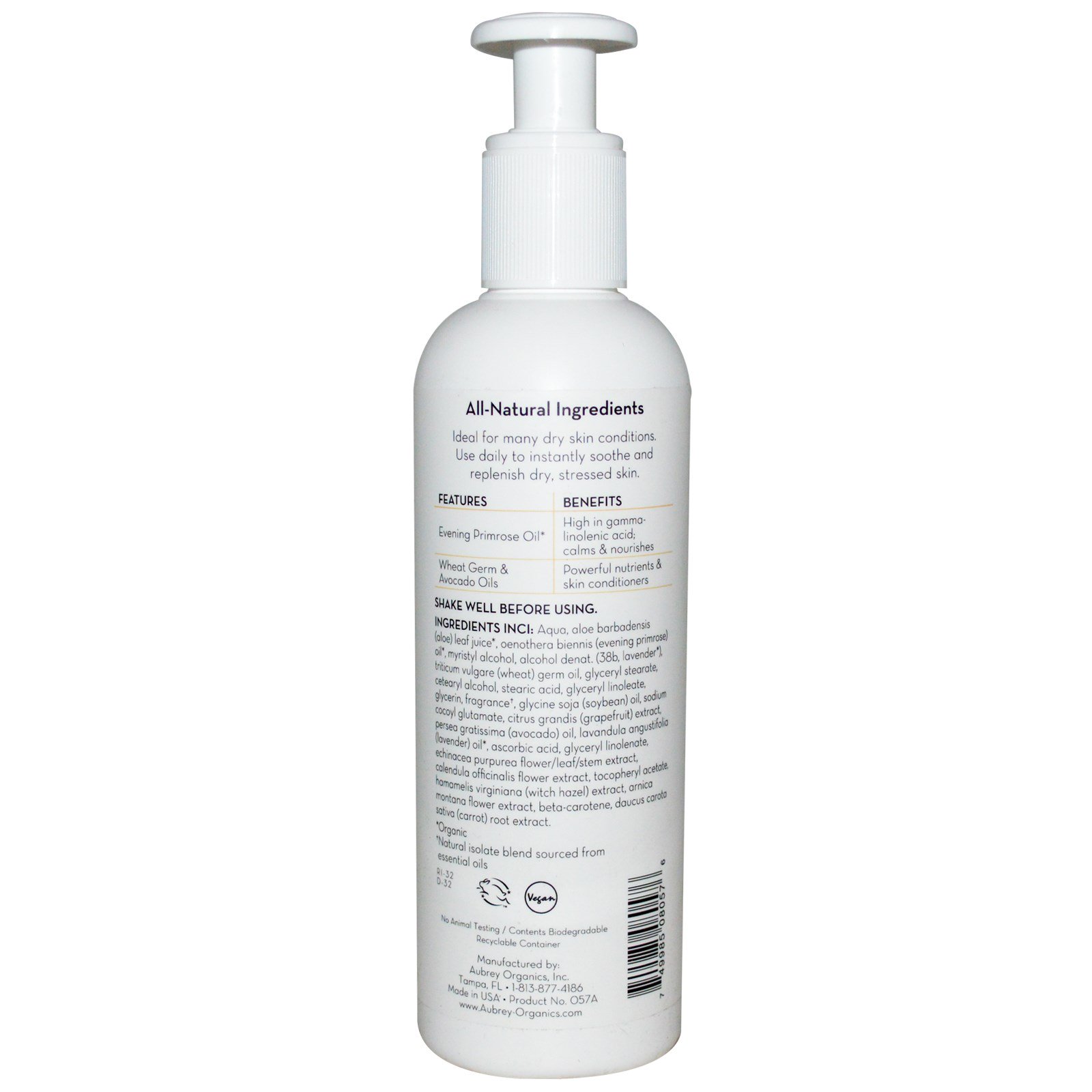 Aubrey Organics, Evening Primrose, Soothing Moisturizing Lotion, 8 fl oz (237 ml)